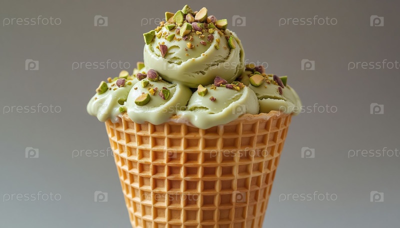 Писташное мороженое в вафлевом конусе AI Цветовая страница Печатный