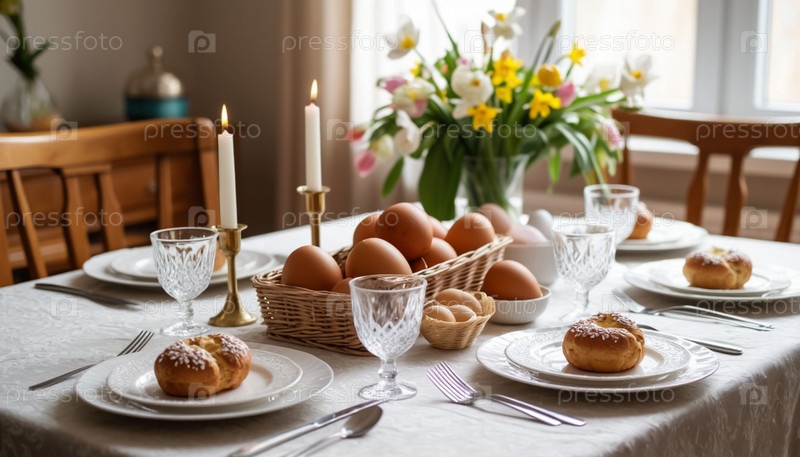 Пасхальный ужин Настройка стола AI Цветовая страница Печатный праздничный