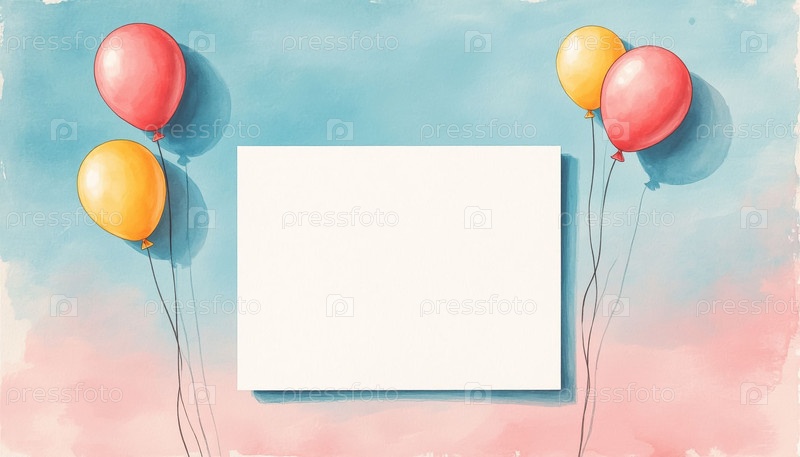 Пустой шаблон поздравительной карточки акварель с воздушными шарами Идеально подходит для выпуска День рождения или дизайн баннера