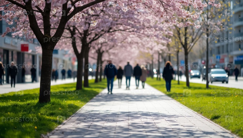 Цветящие весенние деревья в городском парке на площади ИИ Красочная страница для печати