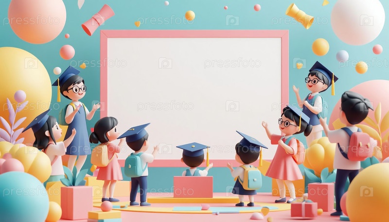 Дизайн открыток для выпускников детских садов в мягком пастеле с плюшевыми игрушками и воздушными шарами