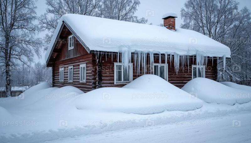 Дом в снежной деревне Зимний пейзаж Сценический вид