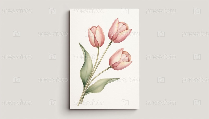 Greeting Card with Hand Drawn Tulips Мягкий розовый пастельный акварель