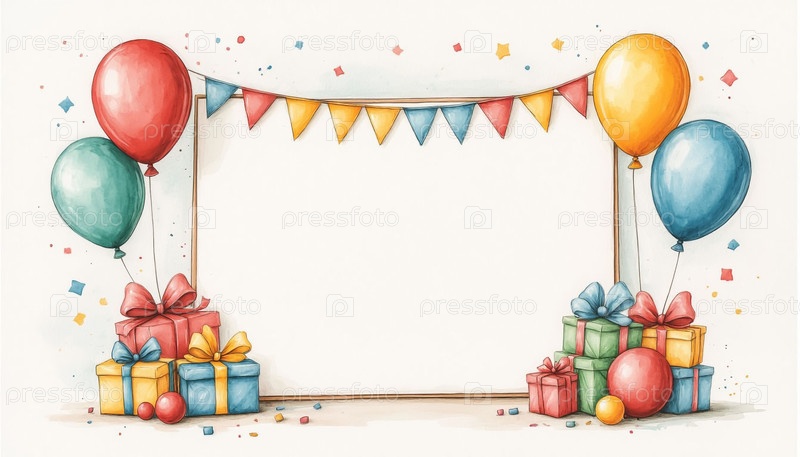 Акварель Детская карта на день рождения Пастельные цвета Пустое текстовое пространство