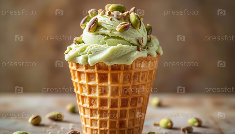 Delicious Green Pistachio Gelato Crispy Cone Линейная художественная иллюстрация