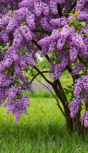 Цветящие фиолетовые ветви закрывают весенний размытый фон AI цветовая страница