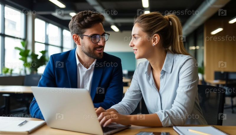 Офисная сцена Мужчины и женщины профессиональные коллеги, сосредоточенные на работе с ноутбуком