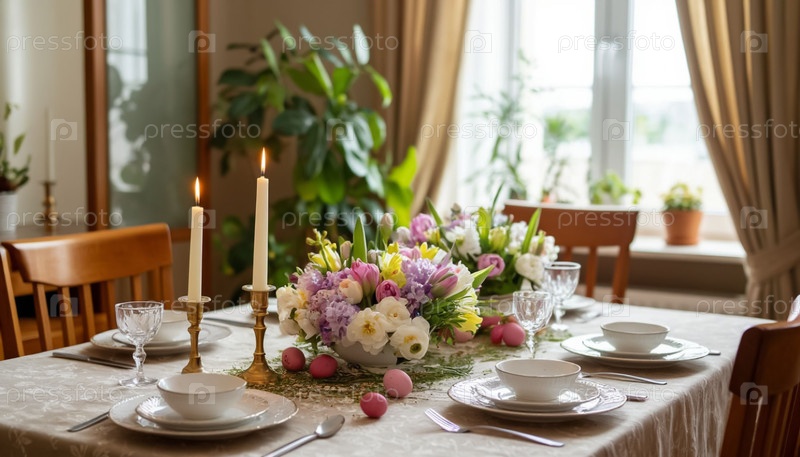 Пасхальный ужин Настройка стола AI Цветовая страница Печатный праздничный