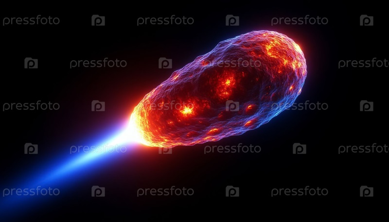 Печатная космическая красочная страница: Комета или метеорит, пролетающий по темному небу с светящимся хвостом