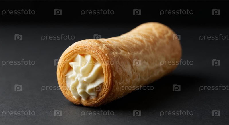 Десертная выпечка с кремовой начинкой на темном столе Top View