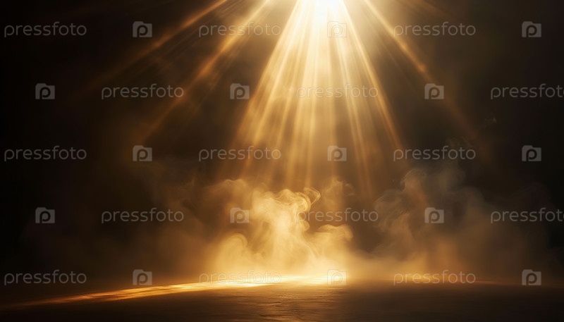 Лучи солнечного света сияют сверху сквозь тьму, создавая яркие драматические световые лучи