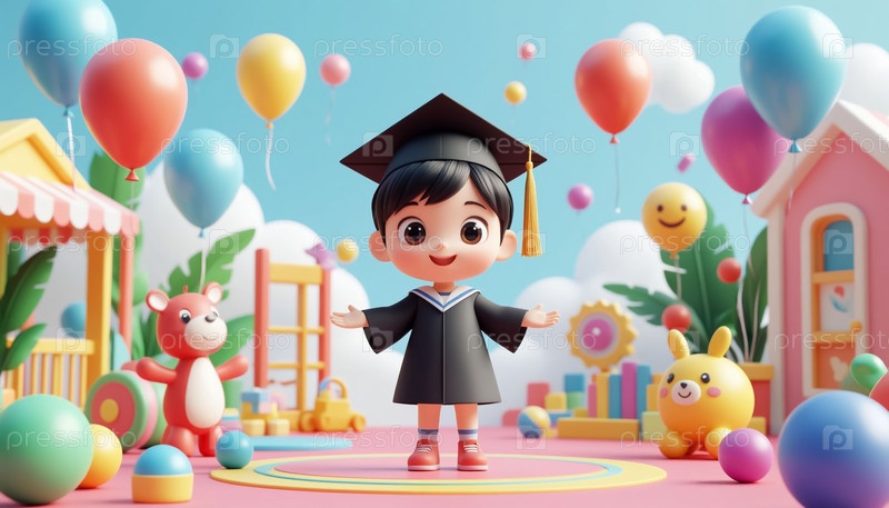 Детский фон для церемонии выпуска детского сада с мягкими пастельными цветами и украшениями