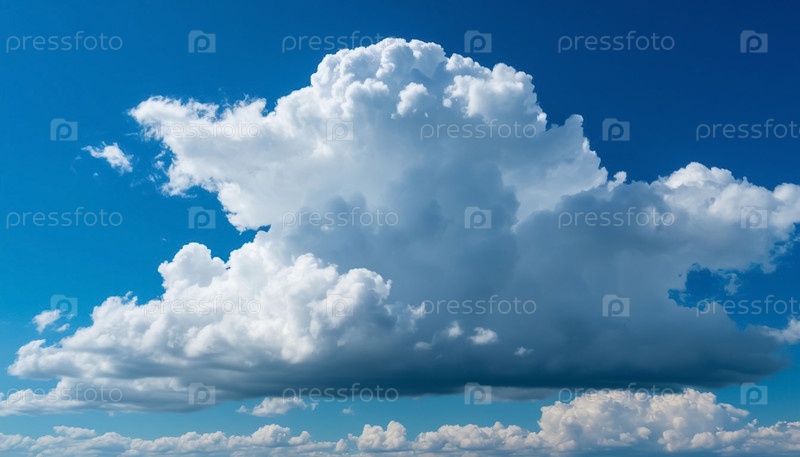 Белое пушистое облако плавает в ясном голубом небе, мирная природа