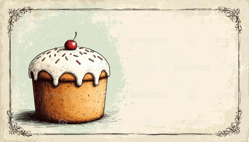 Шаблон баннера Doodle Style с пасхальным куличем и декоративной границей