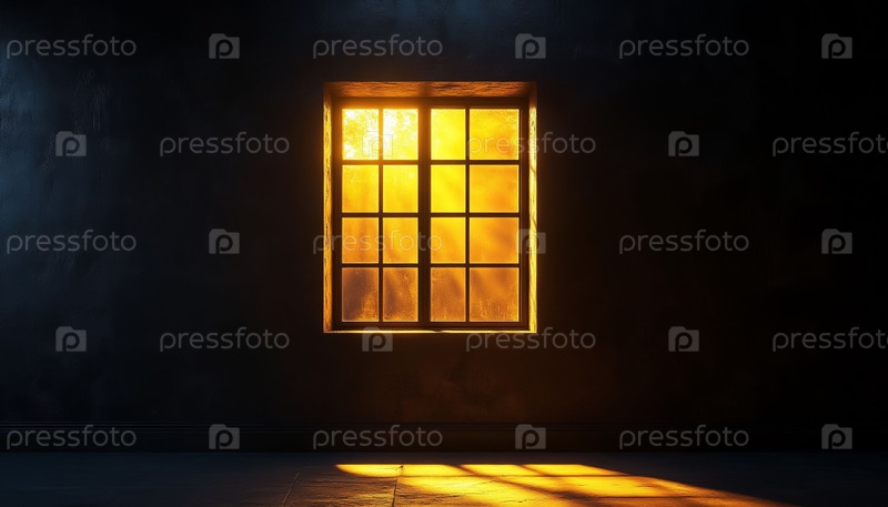 Освещенное окно, отбрасывающее желтый свет на внешнюю черную стену ночью