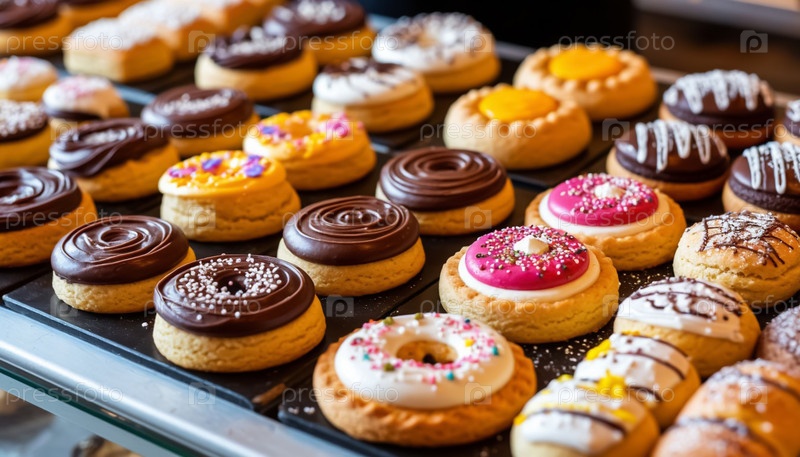 Выбор пекарни со стеклянными печеньками и сладкими шоколадными угощениями