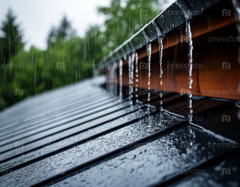 Дождь на крыше, капли стекают вниз Close Up Macro Rain Summer