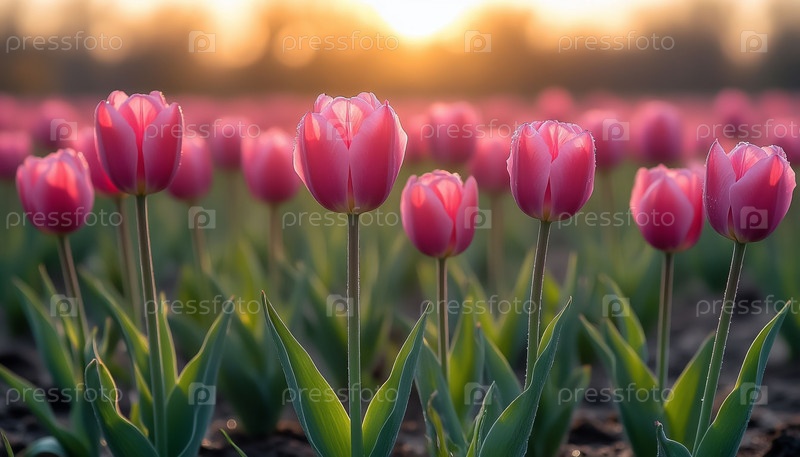 Прекрасный розовый тюльпан цветок луга восход солнца пейзаж линия художественный лист