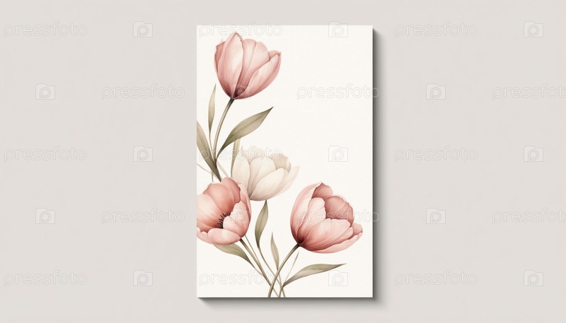 Greeting Card with Hand Drawn Tulips Мягкий розовый пастельный акварель