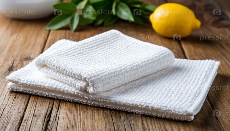 Чистый белый ткань салфетка или кухонный полотенце на столе для гигиены и домашнего хозяйства