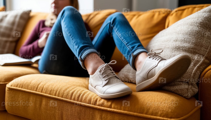 Женские ноги в сапогах, отдыхающие на диване Комфортное расслабление