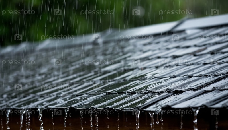 Ближайшее изображение капель дождя, текущих по крыше в летний душ