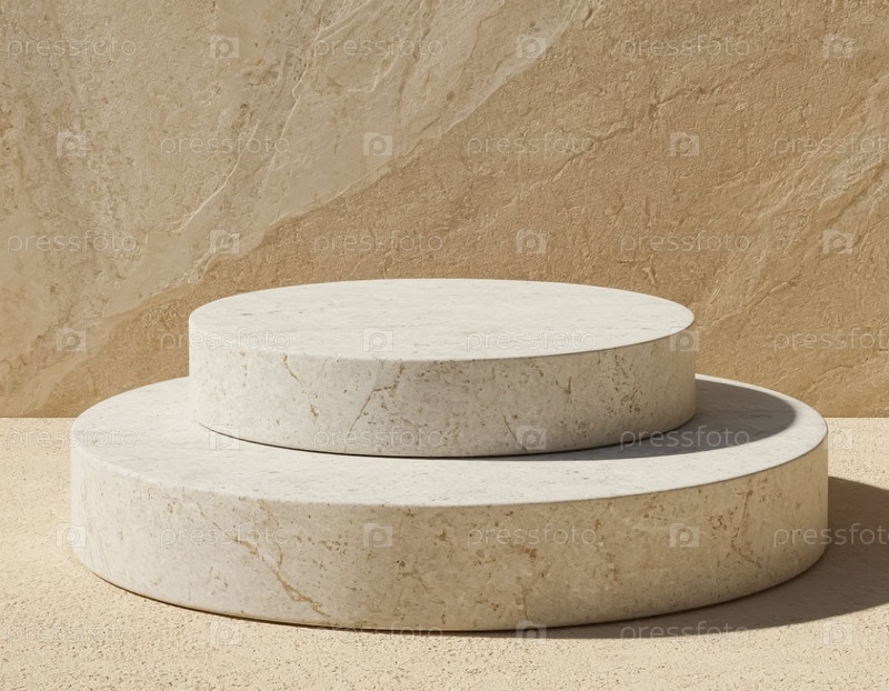 Круглый световой каменный подиум идеально подходит для презентации продукта на бежевом фоне