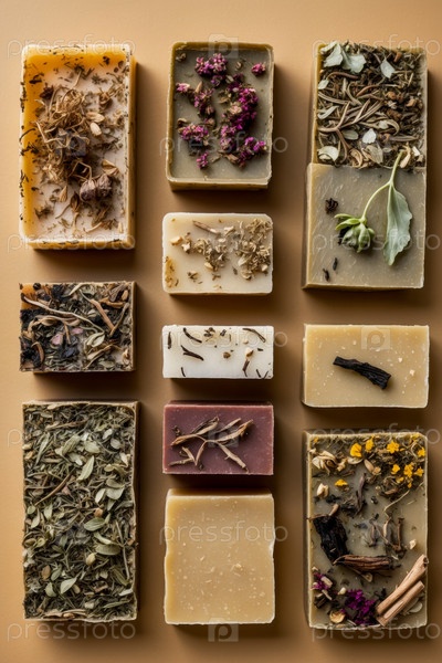 Барный кусок натуральное органическое ароматическое косметическое искусственное мыло плоская ложа на бежевом фоне AI Generative