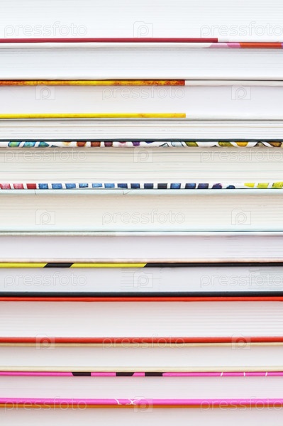 Стопка разноцветных книг крупным планом — цветные корешки и белые страницы, образование, чтение и знания, литература для учебы