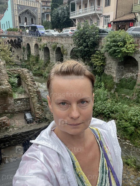 Летний селфи 50-летней женщины в прекрасной природе Грузии