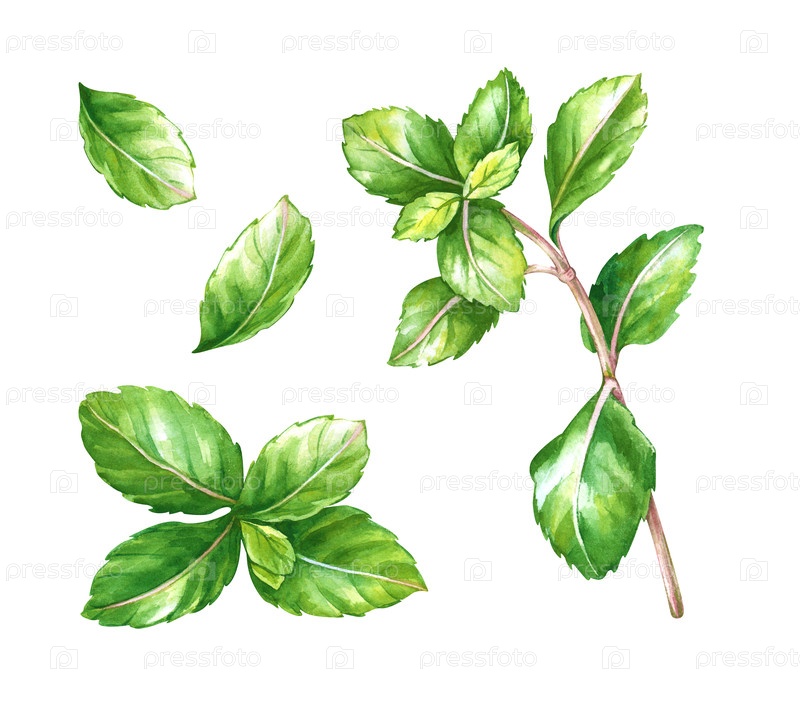 Изолированные на чистом белом фоне свежие зеленые мятежные ветви и рассеянные листья.Ботанические элементы для травяного чая, ароматерапии, средств по уходу за кожей, рецептов коктейлей, садоводства и кулинарного дизайна