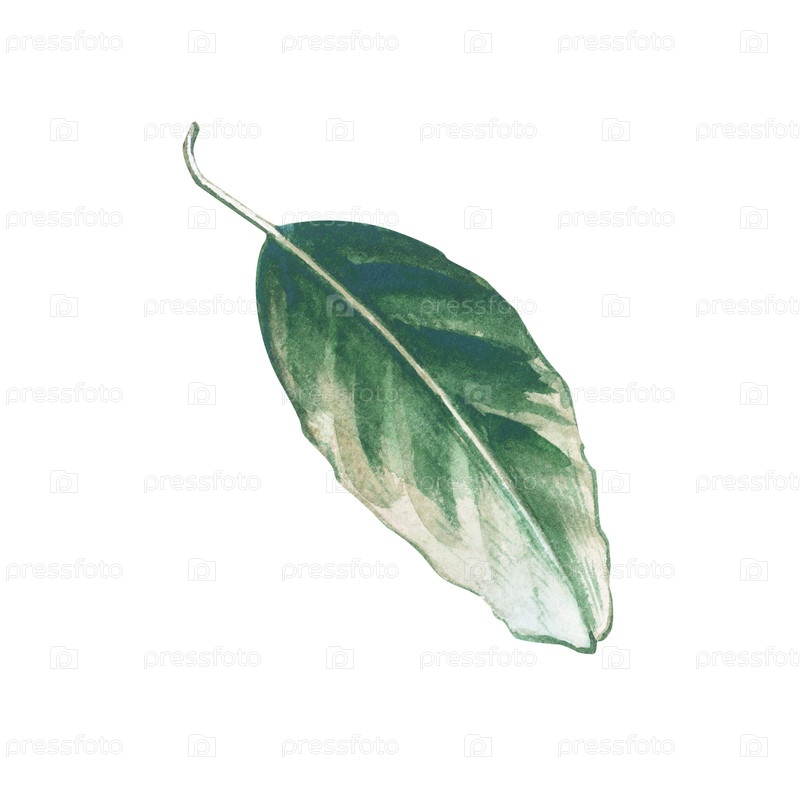Акварельная иллюстрация, изображающая один зеленый лист фруктового дерева. Реалистичный листок на изолированном фоне. Ботанический клипарт для дизайна летних тем и садоводства