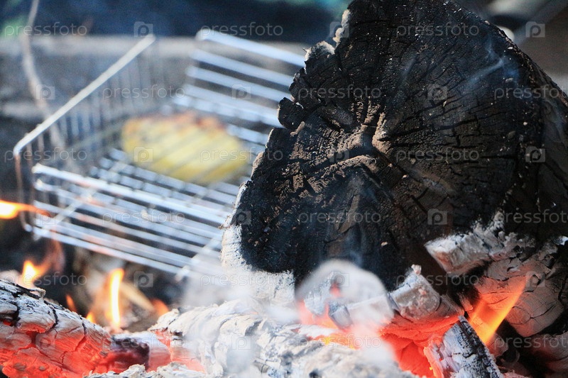 Сжигание дров и использование корзины для гриля на костре