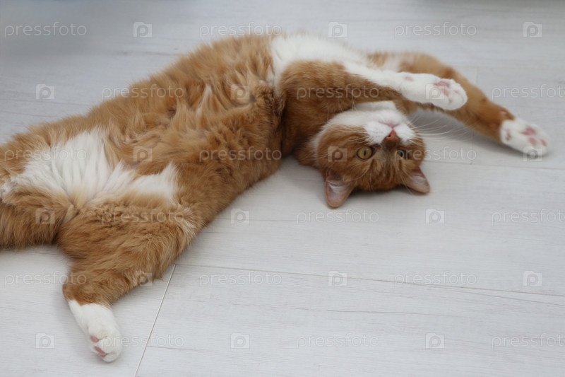 Оранжевые и белые кошки, лежащие на полу Content