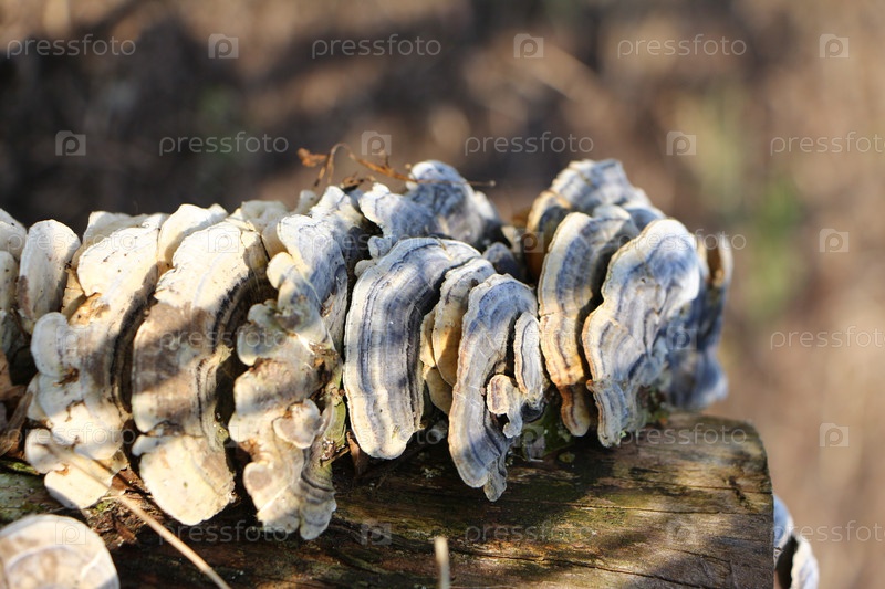 Слоистые трутовики, растущие на древесине в природе