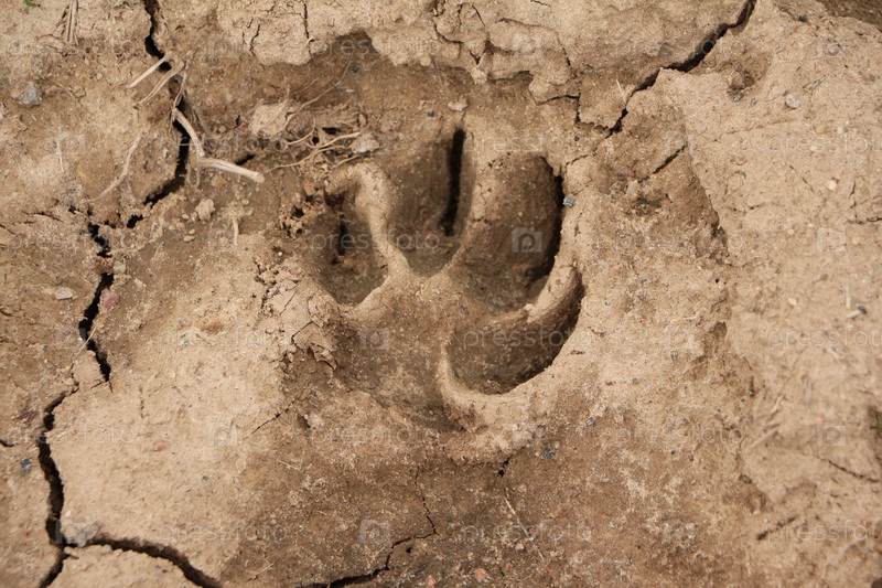 Печать лапы собаки в сухой треснувшей грязи