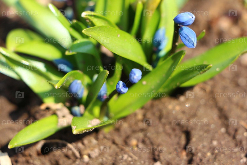 Цветочные почки синей сциллы возникают в начале весны
