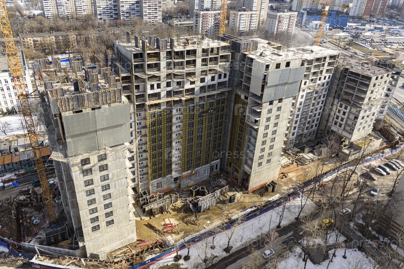 Строительство высотных жилых домов по реновации на Большой Очаковской улице в Москве