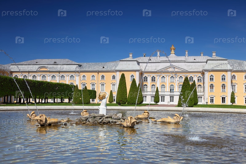 Большой дворец и фонтан "Дуб" Петергофа, Санкт-Петербург, Россия