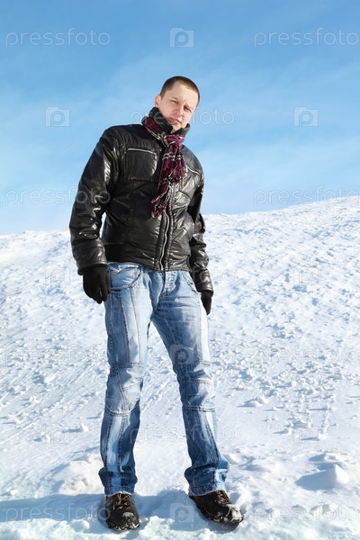 Мужчина стоит на снежном поле
