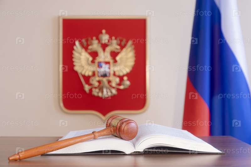 Судейский молоток и уголовный кодекс в зале суда