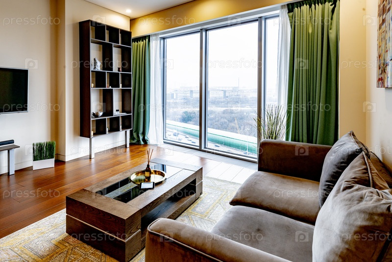 Гостиная с новой мебелью в современнной квартире