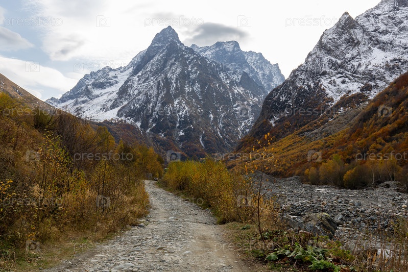 Альпийский пейзаж ущелья Домбай-Ульген в заповеднике Тиберда,