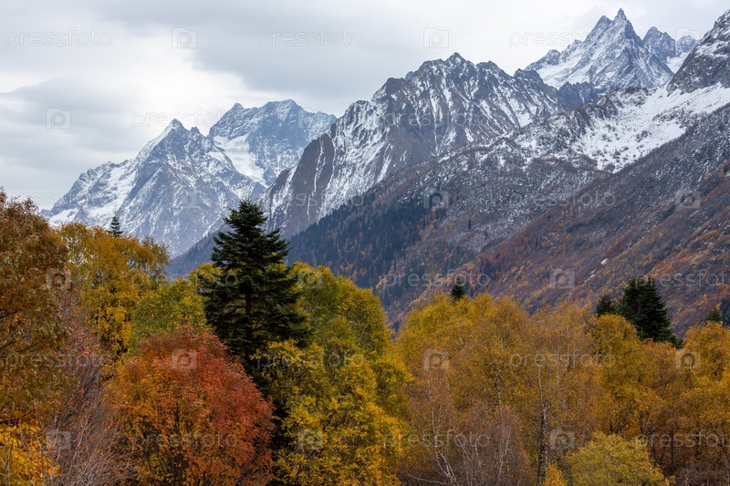 Красивый осенний пейзаж ущелья Алибек в горах Северного Кавказа