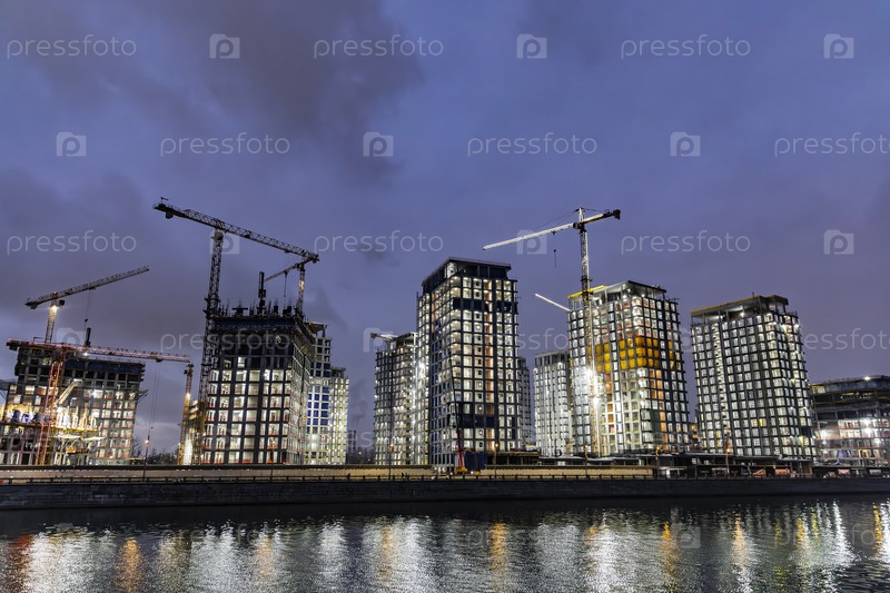 Ночная стройка современного жилого комплекса “Коллекция Лужники” на Лужнецкой набережной