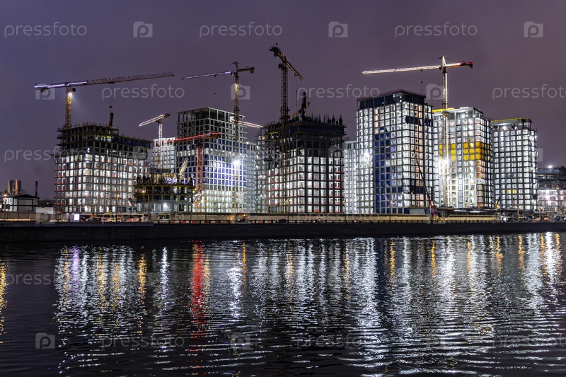 Ночная стройка современного жилого комплекса “Коллекция Лужники” на Лужнецкой набережной