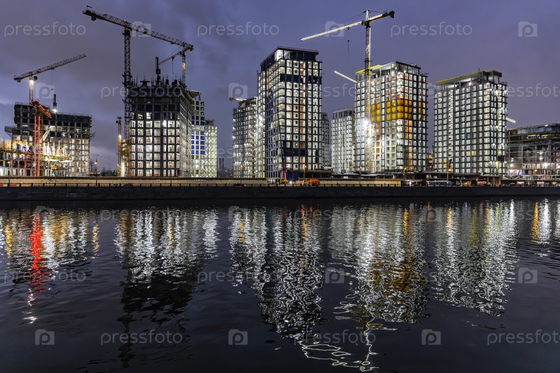 Ночная стройка современного жилого комплекса “Коллекция Лужники” на Лужнецкой набережной