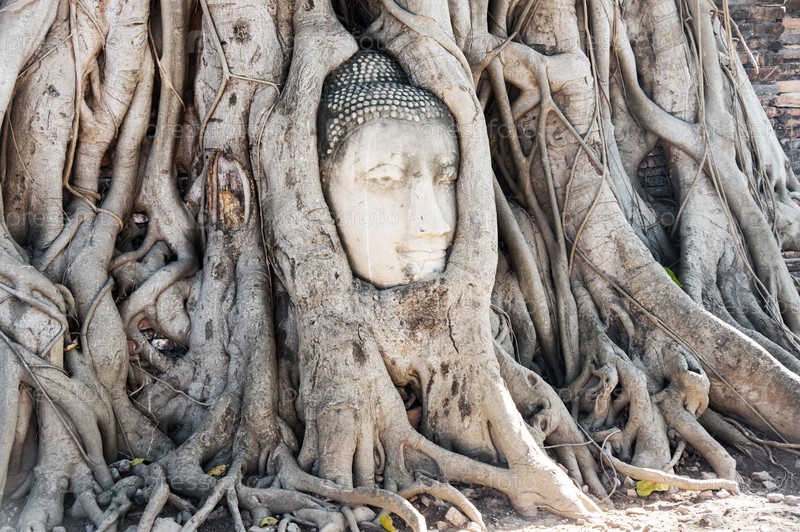 Каменная голова Будды в храме Wat A Prha Mahathat Temple