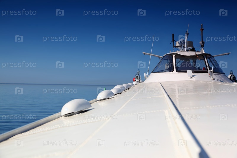 Спокойная белая лодка спокойно скользит по тихим океаническим водам