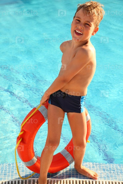 Юный мальчик улыбается возле бассейна